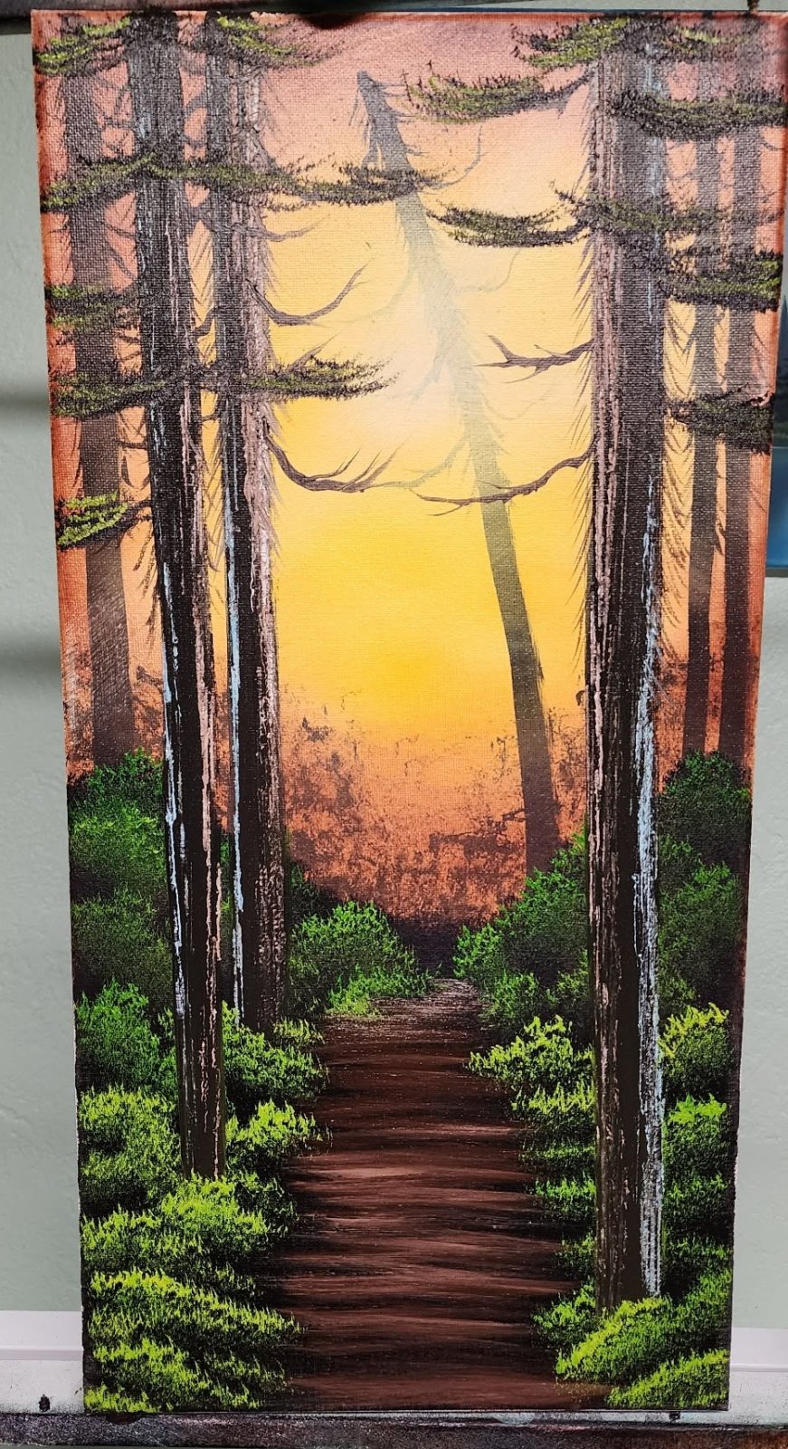 Golden Glowing Pines Bob Ross Workshop with Tanya